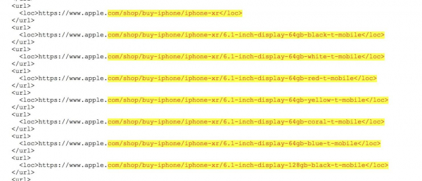 Из содержания URL-адресов следует, что 6,1-дюймовый iPhone Xr выйдет в нескольких цветовых вариантах. Среди них будет красный, желтый, коралловый (?!), белый, синий и черный. Кроме того, смартфон будет доступен с тремя объемами паимяти: 64, 128 и 256 ГБ.