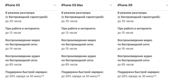 12 сентября на презентации Apple были представлены iPhone XS, iPhone XS Max и iPhone XR. О новинках уже известно практически все, несмотря на то, что они еще даже не попали в руки первых покупателей. Впрочем, кое-что всё же осталось за кадром — это точная емкость аккумулятора. Традиционно, Apple не раскрывает эти данные, однако получить примерное представление о времени работы смартфонов в разных сценариях использования все же можно.