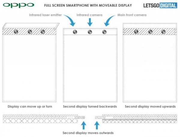 Недавно эксперты проинформировали, что смартфон от компании Oppo оснащены необычными камерами, которые будут выпрыгивать в верней части дисплея. Теперь стало известно, что разработчики пошли дальше и придумали дополнительный всплывающий экран. Согласно новому патенту, ещё один экран будет подниматься выше верхней части смартфона. «Перемещения первого экрана дисплея не ограничиваются простым движением или переворачиванием», – отмечают производители в документе.